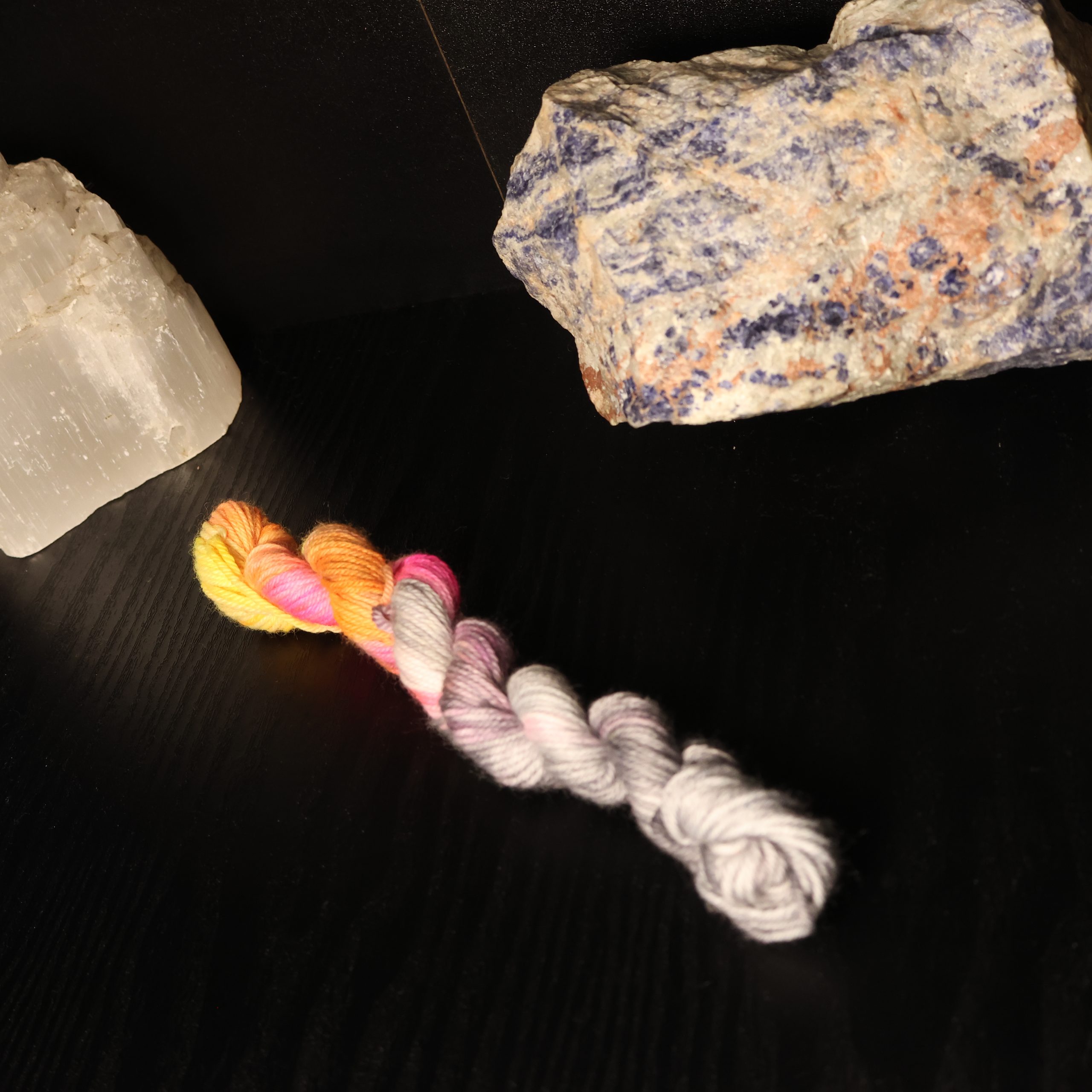 Whether you’re crafting shawls, accessories, or statement pieces, Electric Phoenix Pop brings drama, warmth, and a crackling burst of neon magic. Hand‑dyed in small batches, each skein has its own unique flame pattern, making every project a one‑of‑a‑kind rebirth.