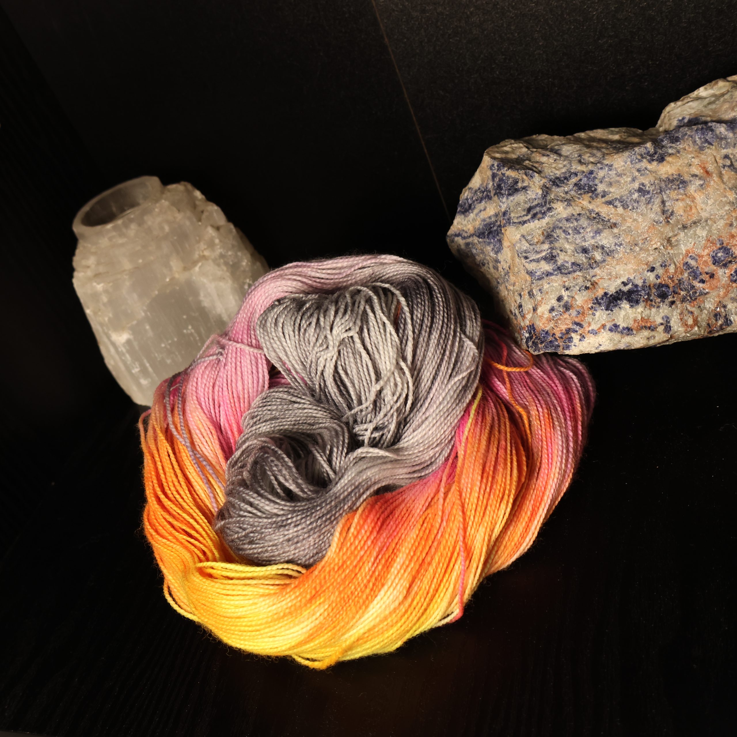 Whether you’re crafting shawls, accessories, or statement pieces, Electric Phoenix Pop brings drama, warmth, and a crackling burst of neon magic. Hand‑dyed in small batches, each skein has its own unique flame pattern, making every project a one‑of‑a‑kind rebirth.