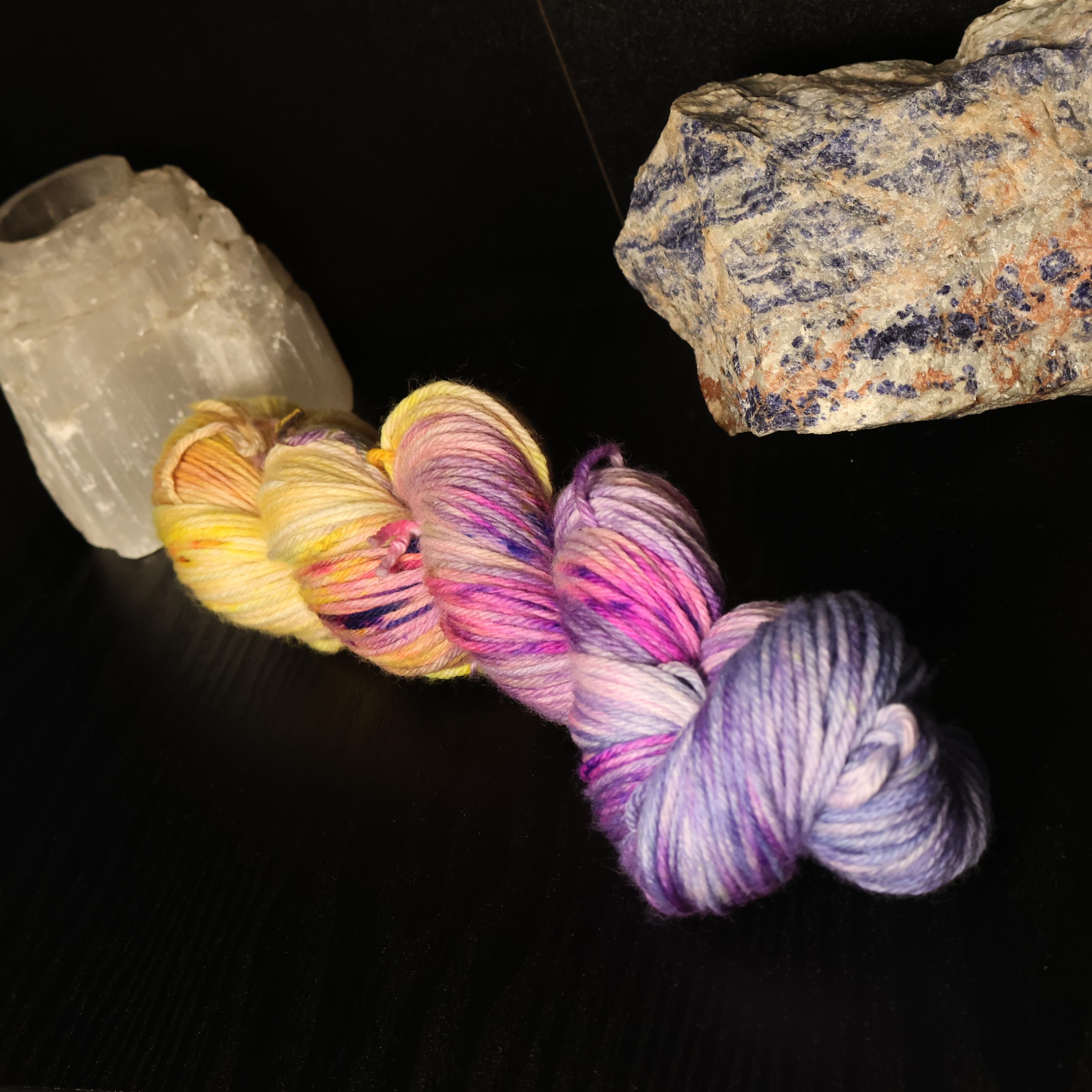 Perfect for makers who love colourways with story and attitude, Stardust Trickster Fox shines in shawls, accessories, statement knits, and anything that deserves a burst of cosmic carnival energy. Hand‑dyed in small batches, each skein has its own unique flow, just like a fox that refuses to be caught.